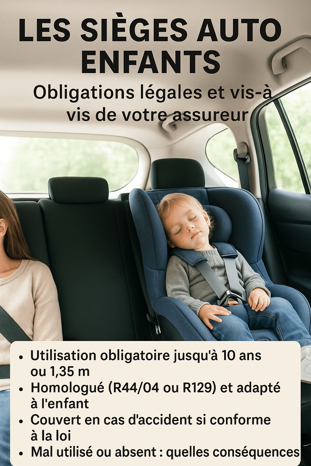 Avant de s’intéresser aux implications assurantielles, il est essentiel de comprendre les bases légales en vigueur. Quelles sont les obligations exactes ? À quel âge ou quelle taille un enfant peut-il se passer d’un siège ? Quels sont les types de dispositifs autorisés ? Cette section fait le point sur l’ensemble des règles applicables en France.